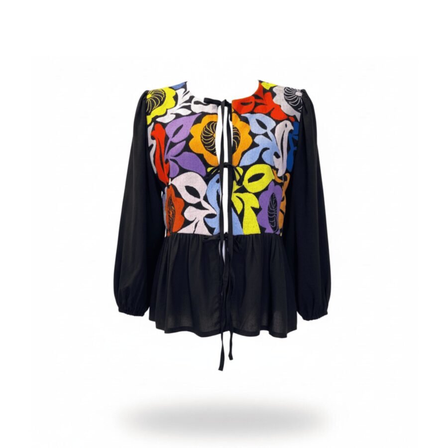 La blusa Copenhague negra y rosa bordada a mano es una pieza que combina elegancia moderna con la riqueza textil de Oaxaca. Su diseño de manga larga y corte cómodo la convierte en una prenda ideal para usar en cualquier temporada, mientras que su confección en rayón le aporta ligereza, suavidad y una caída natural que estiliza la figura.