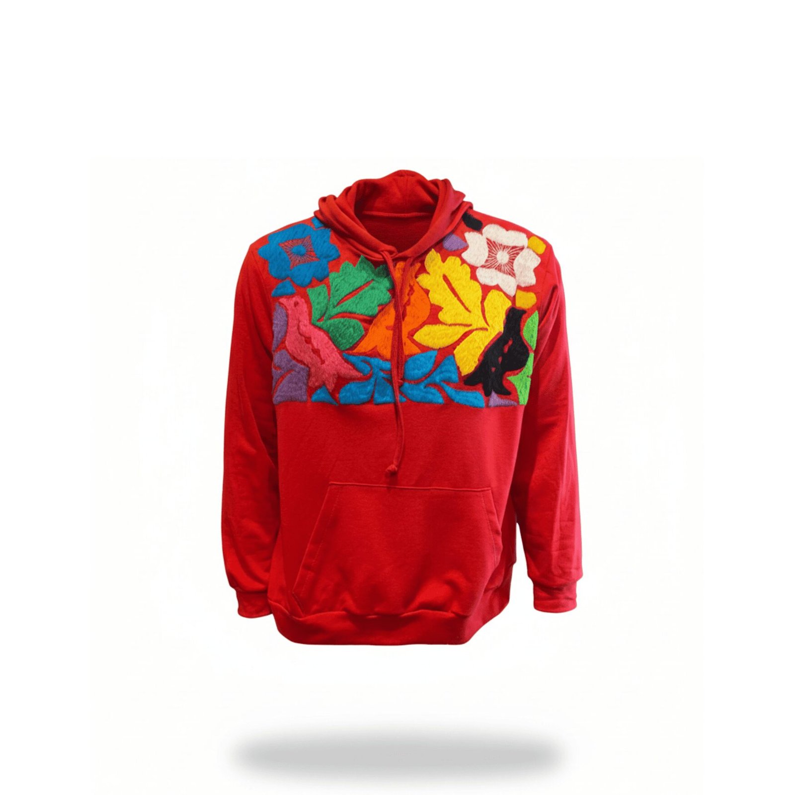 El bordado artesanal ubicado en la cintura ha sido elaborado cuidadosamente por artesanas mazatecas de San Felipe Jalapa de Díaz, quienes aplican técnicas tradicionales transmitidas de generación en generación. Cada puntada refleja dedicación, identidad y conocimiento textil ancestral, lo que hace que cada hoodie sea única y especial.