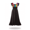 Vestido corto con V, botones en espalda y olanes en manga. El material del vestido es lino liverpool. El bordado esta realizado a mano por artesanas de San Felipe Jalapa de Díaz.