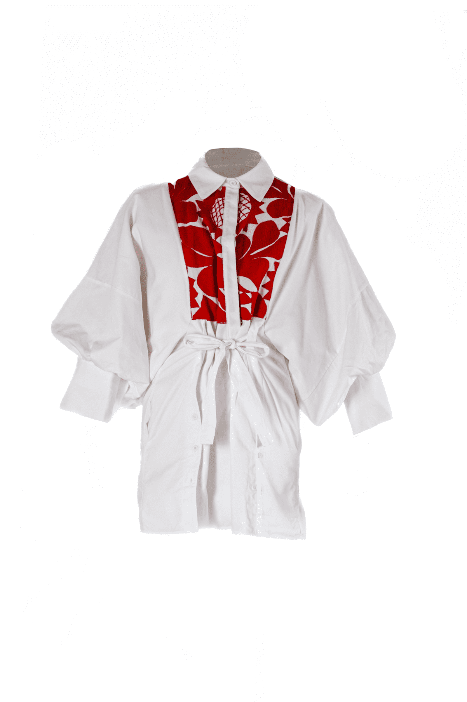 Blusón blanco con mangas bombachas que aportan un toque de originalidad y fluidezcon bordado hecho a mano por artesanas de San Felipe Jalapa de Díaz en un vibrante color rojo. Esta prenda combina la tradición artesanal con un diseño contemporáneo, creando una pieza única y versátil que puede lucirse en diversas ocasiones.