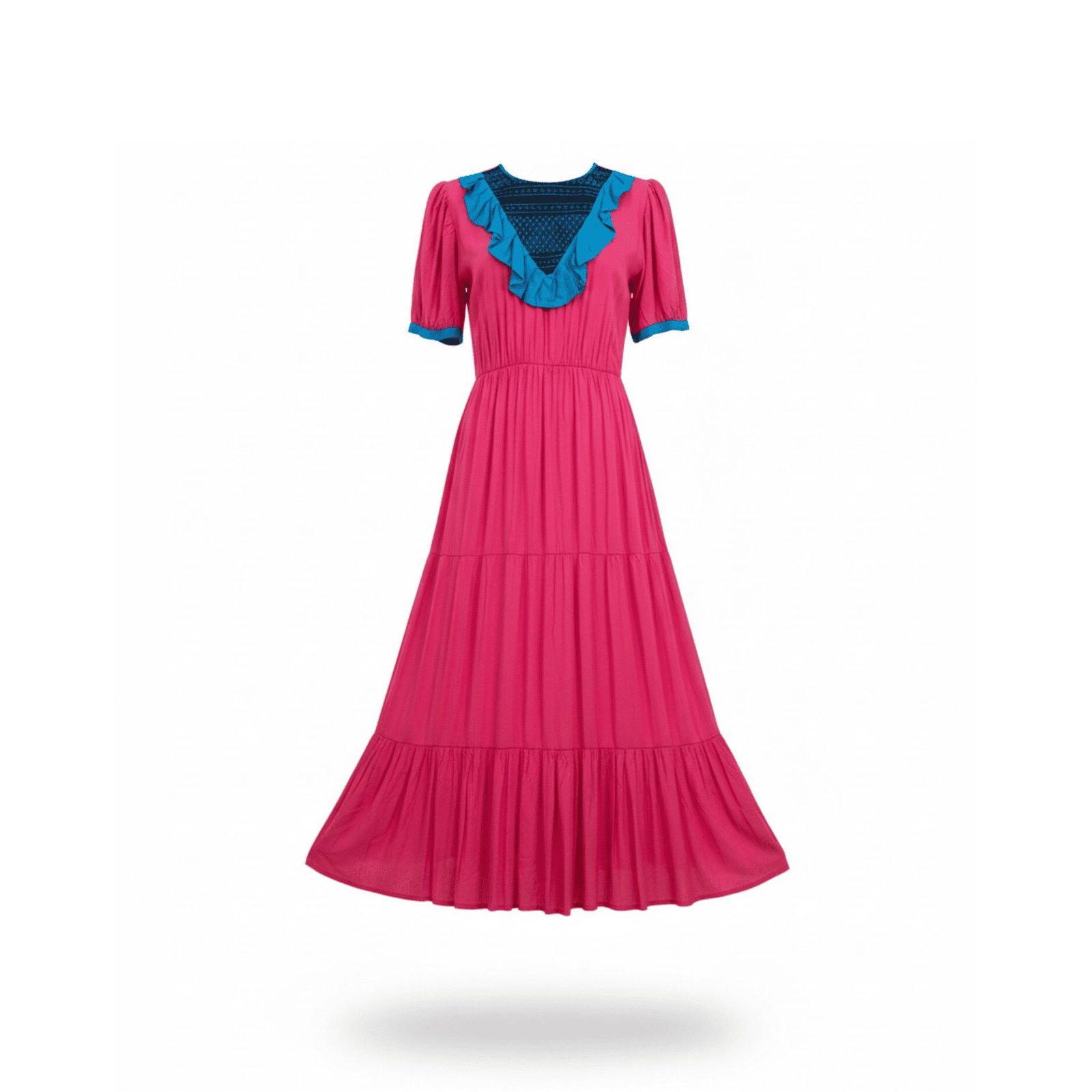 Nuestro diseño de este vestido largo casual con cuello redondo y pechera en V bordado en telar de cintura, es una prenda que fusiona elegancia con tradición textil. Su diseño largo aporta una silueta estilizada y fluida, ideal para mujeres que buscan una prenda versátil con identidad cultural. El cuello redondo equilibra el diseño, mientras que la pechera en V dirige la atención hacia el bordado artesanal.