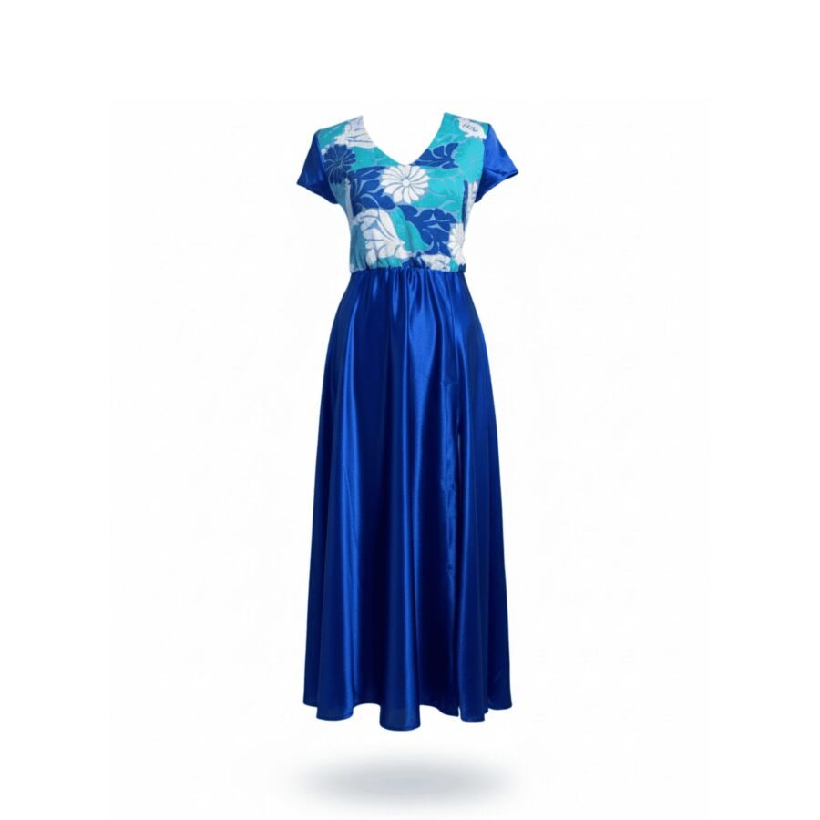 Nuestro vestido largo de noche con bordado de Jalapa de Díaz “Regina”, combina la elegancia moderna con la riqueza del bordado artesanal oaxaqueño. Elaborado en un hermoso satín color azul rey, ofrece una textura suave, brillante y con una caída fluida que realza la silueta femenina. Su diseño incluye una abertura en ambas piernas, aportando un toque sensual y distinguido, además de mangas cortas con olanes, que equilibran el movimiento y la feminidad.