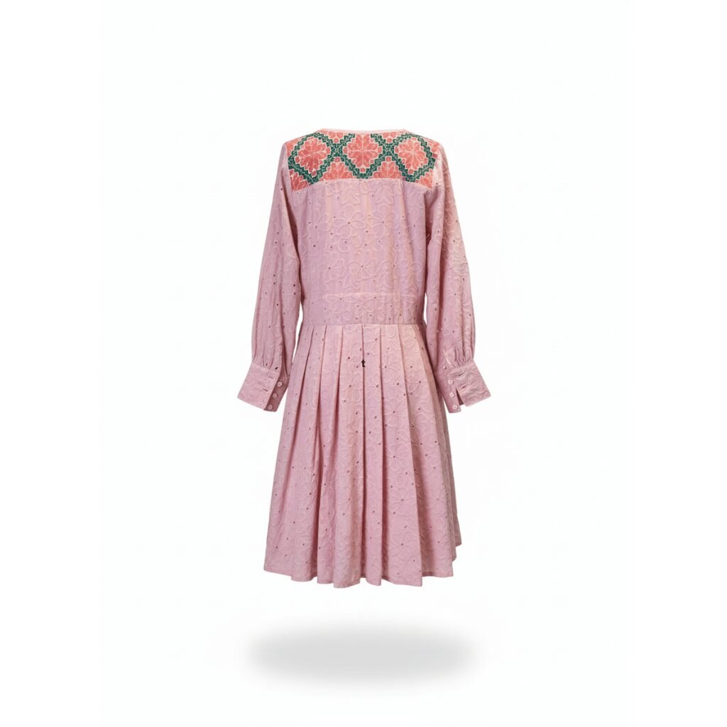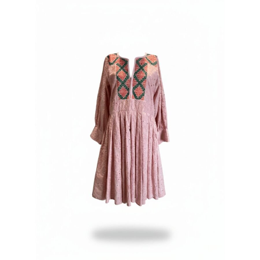 Nuestro vestido mini casual de algodón con bordado de San Vicente Coatlán “Arena”, es una pieza confeccionada en algodón bordado en tono rosa palo, el cual cuenta con mangas largas abullonadas y una silueta fluida que aporta un aire sofisticado a cualquier ocasión especial.