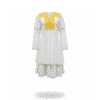 Vestido largo hasta el tobillo en color azul celeste, elaborado en algodón estampado. Cuenta con mangas largas con bordado en puños y botonadura en pecho, cierre oculto y detalle artesanal en punto de cruz realizado por artesanas zapotecas de San Vicente Coatlán. Una pieza fresca, elegante y auténtica.