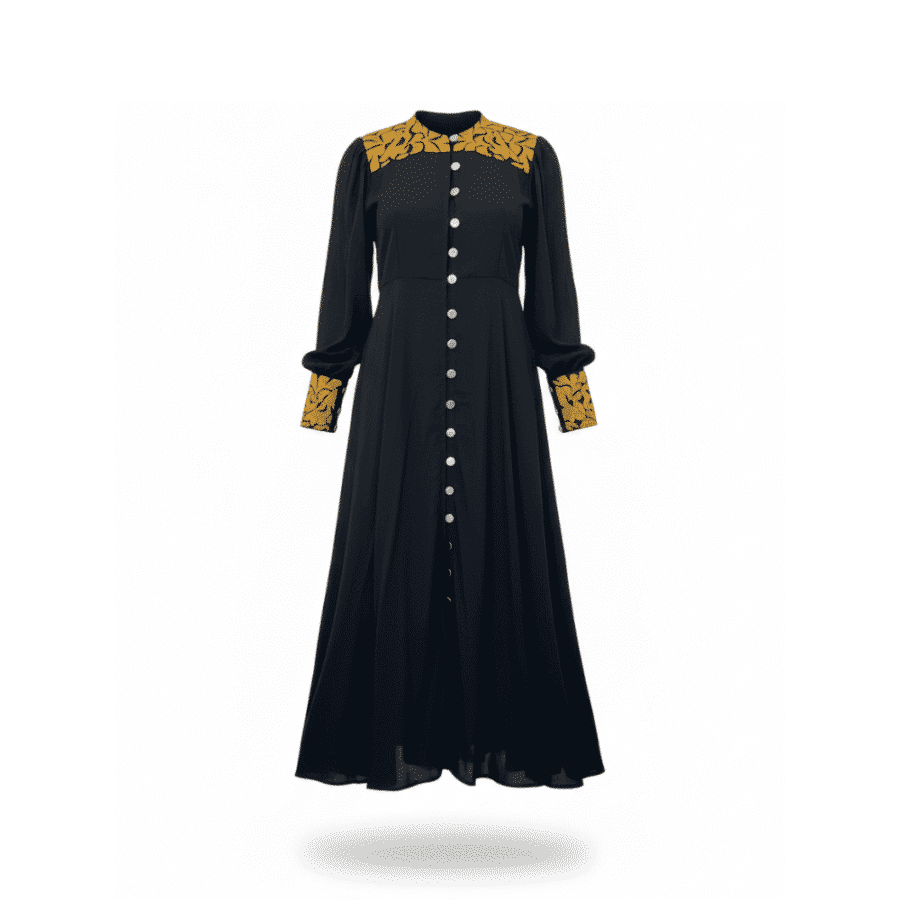 Este diseño de vestido largo en color negro está confeccionado en algodón suave, lo que ofrece comodidad y una caída natural al vestir. Su diseño cuenta con manga larga, lo que aporta una silueta estilizada y versátil para distintas ocasiones.